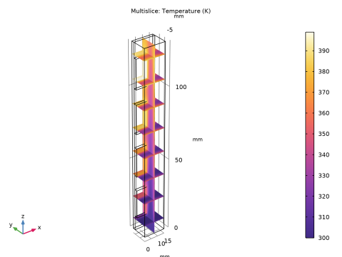 In the Settings window for Multislice, click Replace Expression in the upper-right corner of the Expression section. From the menu, choose Component 1 (comp1)>Heat Transfer in Solids and Fluids>Temperature>T - Temperature - K.