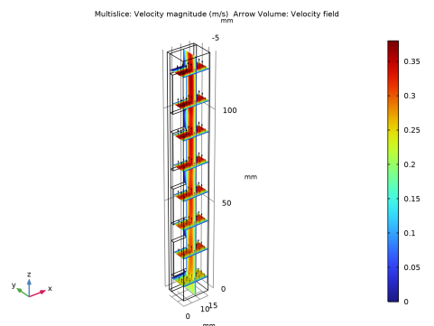 In the Settings window for Multislice, click Replace Expression in the upper-right corner of the Expression section. From the menu, choose Component 1 (comp1)>Laminar Flow>Velocity and pressure>spf.U - Velocity magnitude - m/s.