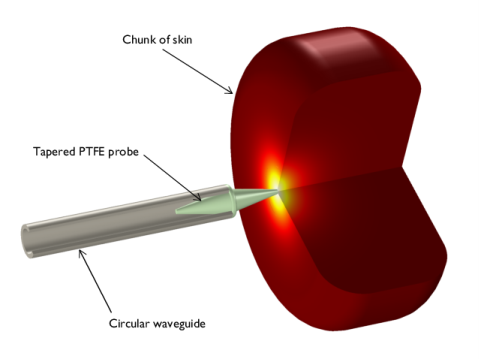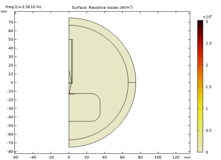 In the Settings window for Surface, click Replace Expression in the upper-right corner of the Expression section. From the menu, choose Component 1 (comp1)>Electromagnetic Waves, Frequency Domain>Heating and losses>emw.Qrh - Resistive losses - W/m³.