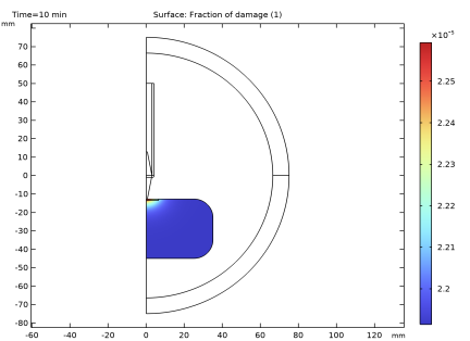 In the Settings window for Surface, click Replace Expression in the upper-right corner of the Expression section. From the menu, choose Component 1 (comp1)>Bioheat Transfer>Irreversible transformation>ht.theta_d - Fraction of damage.