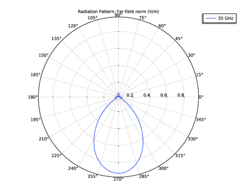In the Model Builder window, expand the Results>2D Far Field (emw) node, then click 2D Far Field (emw).