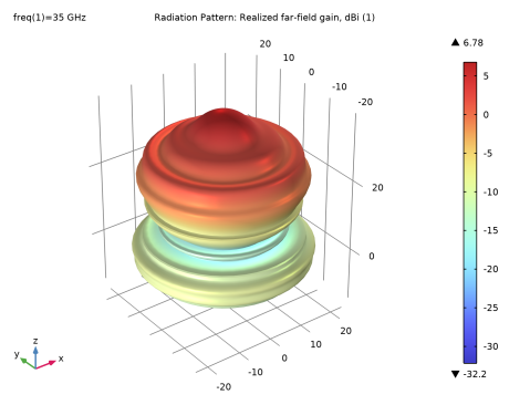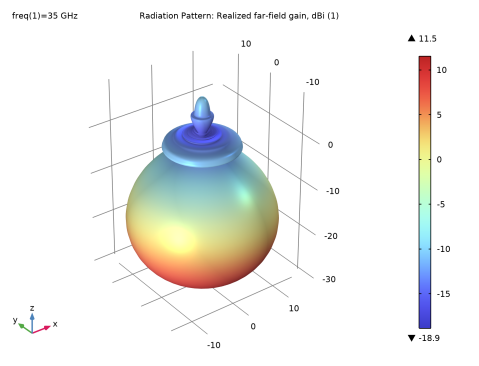 In the Model Builder window, expand the Results>3D Far Field, Gain (emw) node, then click 3D Far Field, Gain (emw).