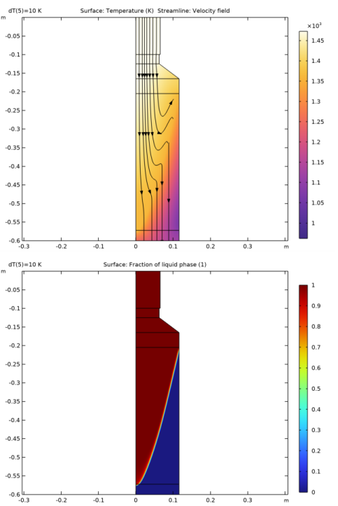 In the Settings window for Surface, click Replace Expression in the upper-right corner of the Expression section. From the menu, choose Component 1 (comp1)>Definitions>Variables>alpha - Fraction of liquid phase.