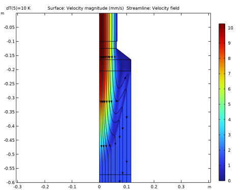 In the Settings window for Surface, click Replace Expression in the upper-right corner of the Expression section. From the menu, choose Component 1 (comp1)>Heat Transfer in Fluids>Domain fluxes>ht.dfluxMag - Conductive heat flux magnitude - W/m².