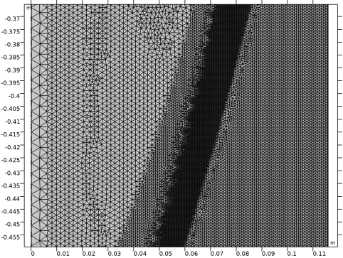 In the Model Builder window, expand the Component 1 (comp1)>Meshes node, then click Level 2 Adapted Mesh 2.