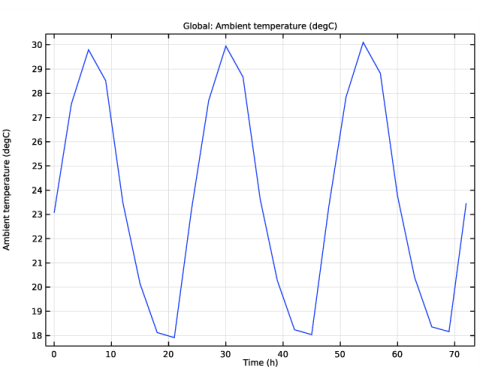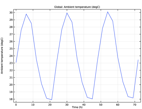 In the Settings window for Global, click Replace Expression in the upper-right corner of the y-Axis Data section. From the menu, choose Component 1 (comp1)>Ambient data>ampr1.T_amb - Ambient temperature - K.