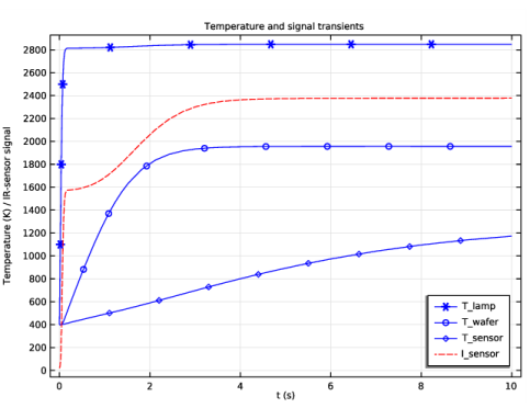 In the Settings window for 1D Plot Group, type Temperature and Signal Transients in the Label text field.