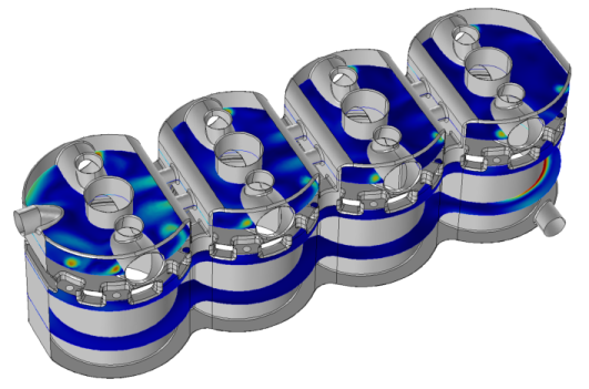 In the Model Builder window, under Results, Ctrl-click to select Velocity (spf), Pressure (spf), Temperature, 3D (ht), and Isothermal Contours (ht).