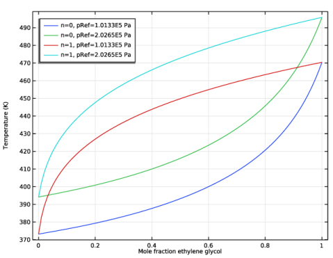 In the Model Builder window, expand the Component 1 (comp1)>Materials node, then click Liquid: ethylene glycol-water 1 (pp1mat1).