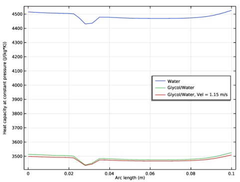 In the Settings window for Global, click Replace Expression in the upper-right corner of the y-Axis Data section. From the menu, choose Global definitions>Functions>HeatCapacityCppp1(temperature, pressure, massfraction_ethylene_glycol, massfraction_water) - Heat capacity (Cp) 1.
