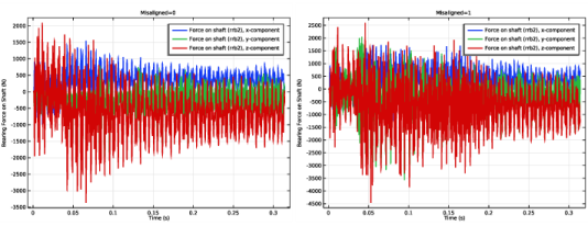 In the Settings window for Global, click Replace Expression in the upper-right corner of the y-Axis Data section. From the menu, choose Component 1 (comp1)>Multibody Dynamics>Radial Roller Bearing 2>Force on shaft (rrb2) (spatial frame) - N>All expressions in this group.