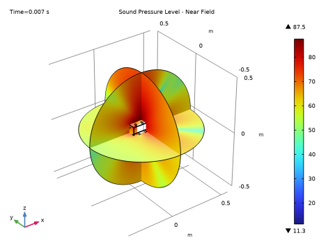 In the Model Builder window, expand the Study 3 - Acoustics/Solution 3 (10) (sol3) node, then click Selection.