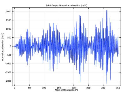 In the Model Builder window, expand the Normal Acceleration: Frequency node, then click Point Graph 1.