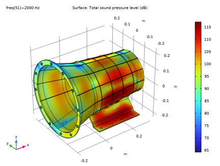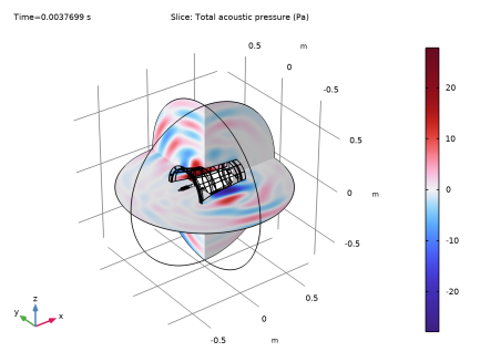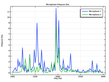 In the Model Builder window, expand the Study: Acoustics (Frequency Domain)>Solver Configurations>Solution 2 (sol2)>Dependent Variables 2 node, then click Pressure (comp2.p).