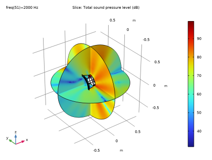 While working with reduced components, the states of the ROMs are dependent variables. Since these are global degrees of freedom, a reconstruction of the displacement field is required in order to evaluate or plot any field variable. This is done by default within the Reduced Flexible Components node, which makes it possible to plot or evaluate any field variable in postprocessing, including stresses and strains. Also, such reconstructed field variables can seamlessly be used for any multiphysics coupling, for example, transferring the normal acceleration of the elastic housing to the acoustics analysis in order to predict the generation of noise.