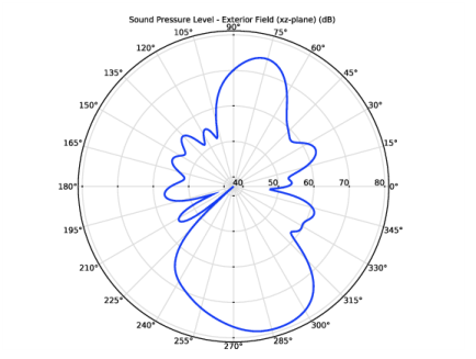 Figure 9: Far-field sound pressure level at a distance of 1 m in the xz-plane at 2000 Hz.