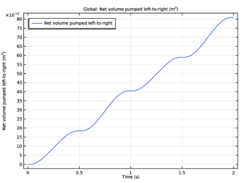 In the Settings window for 1D Plot Group, type Net Volume Pumped Left-to-Right in the Label text field.