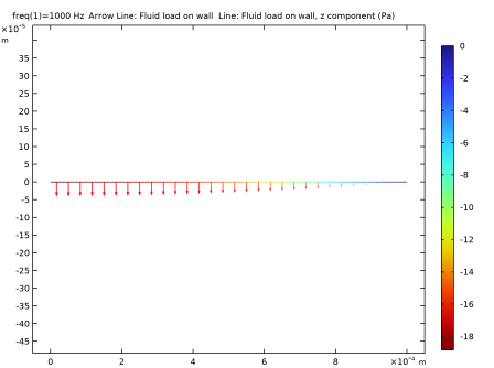 In the Settings window for Line, click Replace Expression in the upper-right corner of the Expression section. From the menu, choose Component 1 (comp1)>Thin-Film Flow>Fluid loads>Fluid load on wall - N/m²>tff.fwallz - Fluid load on wall, z-component.