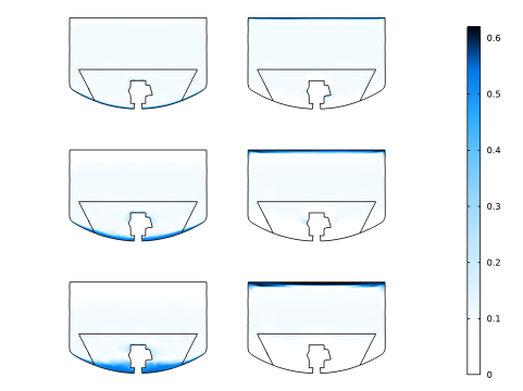 In the Model Builder window, expand the Study 1>Solver Configurations>Solution 1 (sol1)>Time-Dependent Solver 1>Segregated 1 node, then click Velocity u, Pressure p.