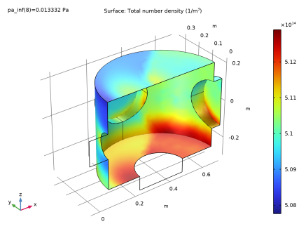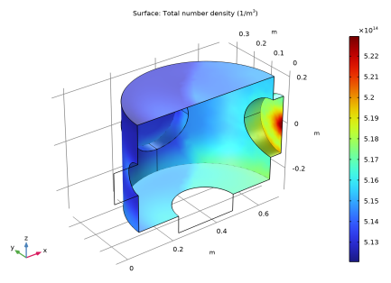 In the Model Builder window, expand the Results>Total Number Density (fmf2) node, then click Surface.