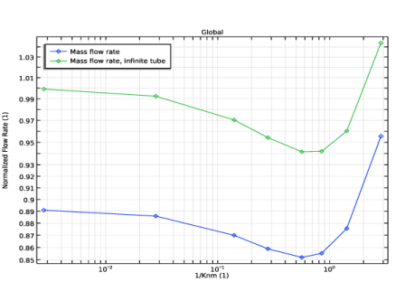 In the Model Builder window, under Component 1 (comp1)>Free Molecular Flow 2 (fmf2) click Molecular Flow 1.