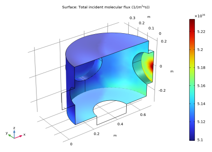 In the Model Builder window, expand the Results>Incident Molecular Flux (fmf) node, then click Surface.
