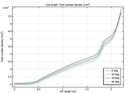 Click Replace Expression in the upper-right corner of the y-Axis Data section. From the menu, choose Component 1 (comp1)>Free Molecular Flow>Number density>fmf.ntot - Total number density - 1/m³.