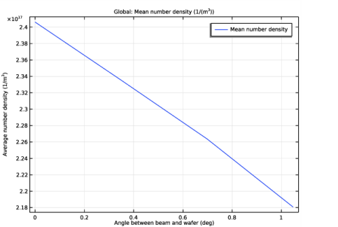 In the Settings window for 1D Plot Group, type Average Number Density vs. Wafer Angle in the Label text field.
