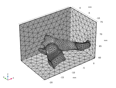In the Model Builder window, under Component 1 (comp1)>Mesh 1 right-click Free Tetrahedral 1 and choose Build All to once again build the mesh on the domains.