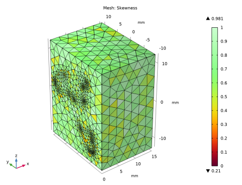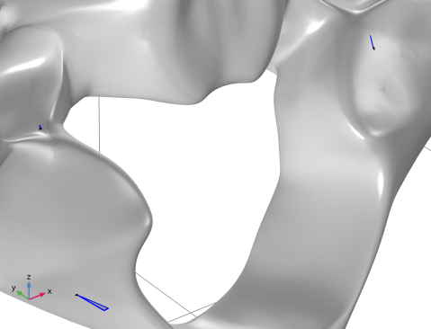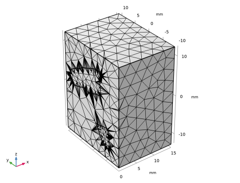 In the Model Builder window, under Component 1 (comp1)>Mesh 1 right-click Import 2 and choose Build Selected to import a Normal sized surface mesh of the block.
