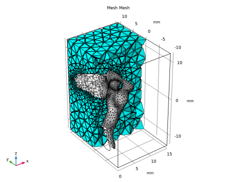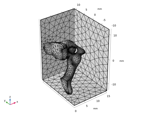 Rotate the mesh in the Graphics window to check that the vertebra is fully contained in the block, the two meshes should not intersect. Click the Go to Default view button.