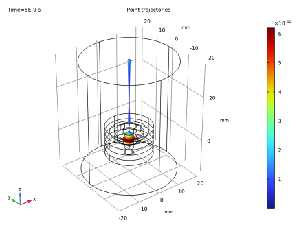 In the Model Builder window, expand the Results>Particle Trajectories (cpt)>Particle Trajectories 1 node, then click Particle Trajectories 1.