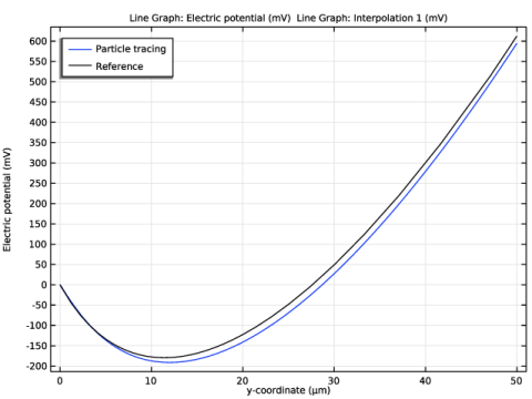 Compute the particle trajectories, assuming no space charge effects are present, using a Time-Dependent Solver. From these trajectories, compute the space charge density using the Electric Particle Field Interaction node. Because there is no potential barrier during the first iteration, all of the particles should reach the anode and the transmitted current should equal the thermionic current at the cathode.