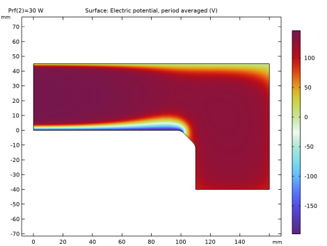 Click Add Expression in the upper-right corner of the Expressions section. From the menu, choose Component 1 (comp1)>Plasma, Time Periodic>Metal Contact 1>ptp.mct1.Vdcb_per - DC bias voltage - V.