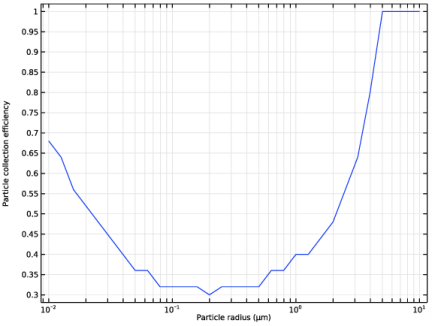 A Time Dependent study that solves for the particle trajectories using the Particle Tracing for Fluid Flow (fpt) interface to obtain the particle collection efficiency.