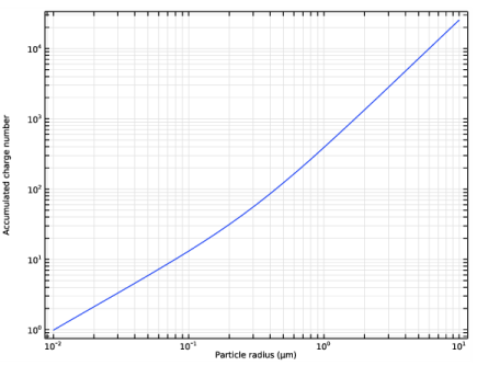 In the Model Builder window, expand the Accumulated Charge Number vs. Particle Radius node, then click Particle 1.