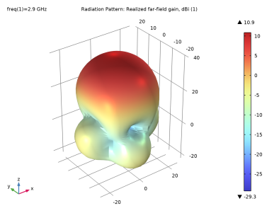 In the Model Builder window, expand the Results>2D Far Field (emw) node, then click Radiation Pattern 1.