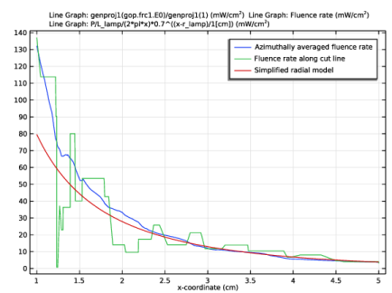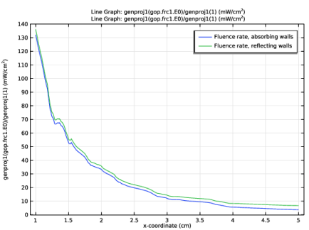 In the Settings window for 1D Plot Group, type Fluence Rate Radial Distribution in the Label text field.