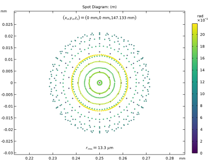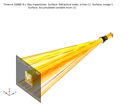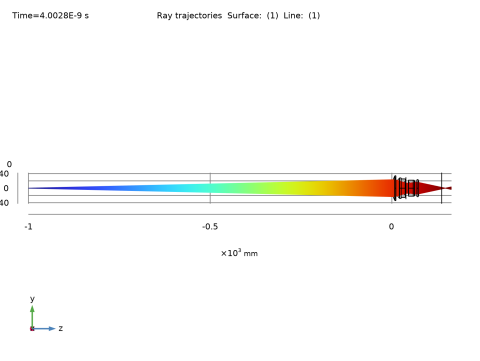 In the Model Builder window, expand the Results>Ray Diagram 3>Ray Trajectories 1 node, then click Color Expression 1.