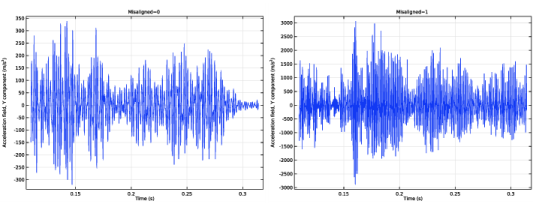 In the Model Builder window, expand the Y Acceleration of Wheel (Frequency Spectrum) node, then click Point Graph 1.