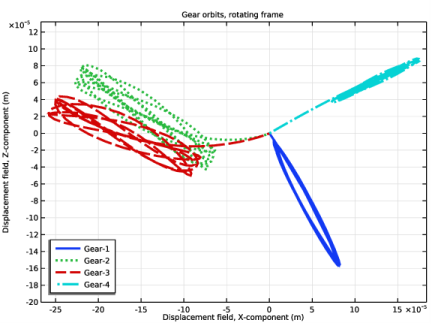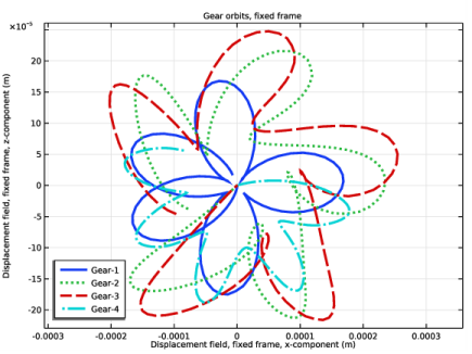 In the Model Builder window, expand the Gear orbits, rotating frame 1 node, then click Point Graph 1.