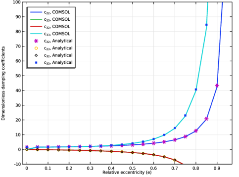 In the Settings window for Global, click Replace Expression in the upper-right corner of the y-Axis Data section. From the menu, choose Component 1 (comp1)>Hydrodynamic Bearing>Dynamic coefficients>hdb.sfd1.c22 - Bearing damping coefficient, local yy-component - N·s/m.