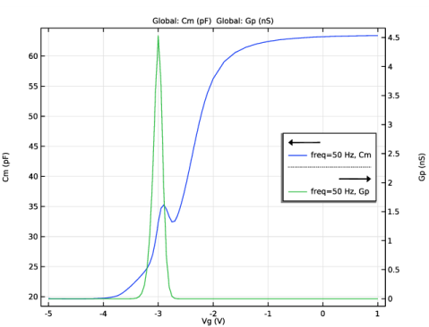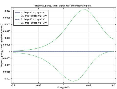 In the Model Builder window, under Study 1 - Vg sweep at 50 Hz click Step 1: Semiconductor Equilibrium.
