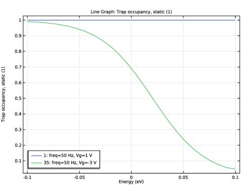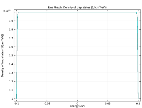 In the Settings window for 1D Plot Group, type Density of trap states vs. Energy in the Label text field.