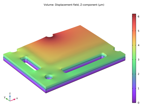In the Settings window for Volume, click Replace Expression in the upper-right corner of the Expression section. From the menu, choose Component 1 (comp1)>Solid Mechanics>Displacement>Displacement field - m>w - Displacement field, Z-component.