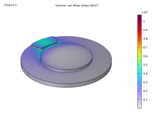 In the Model Builder window, expand the Study 1>Solver Configurations>Solution 1 (sol1)>Dependent Variables 1 node, then click Contact pressure (comp1.solid.Tn_ap1).