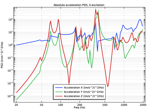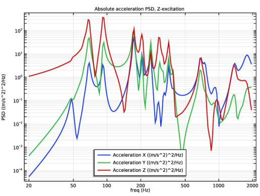 In the Model Builder window, right-click Absolute acceleration PSD Y-excitation and choose Duplicate.