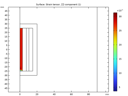 In the Settings window for Surface, click Replace Expression in the upper-right corner of the Expression section. From the menu, choose Component 1 (comp1)>Solid Mechanics>Strain>Strain tensor (material and geometry frames)>solid.eZZ - Strain tensor, ZZ-component.