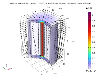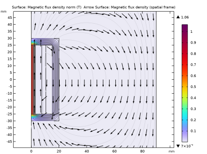In the Model Builder window, under Results click Magnetic Flux Density Norm, Revolved Geometry (mf).