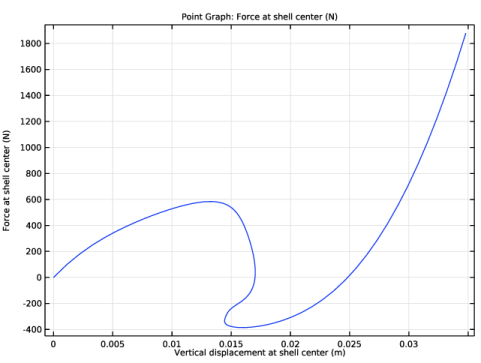 In the Settings window for Point Graph, click Replace Expression in the upper-right corner of the y-Axis Data section. From the menu, choose Component 1 (comp1)>Shell>P - Force at shell center - N.